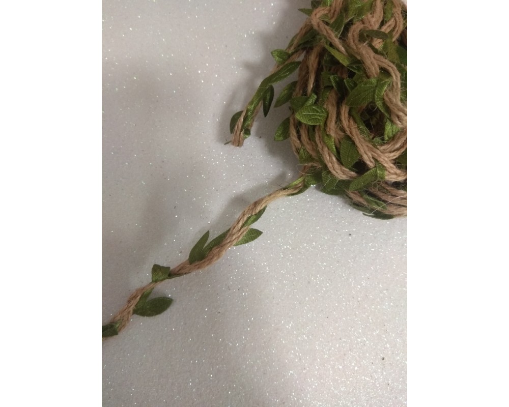 Тесьма из мешковины с зелеными листочками 1,5 см, цена за 1 м