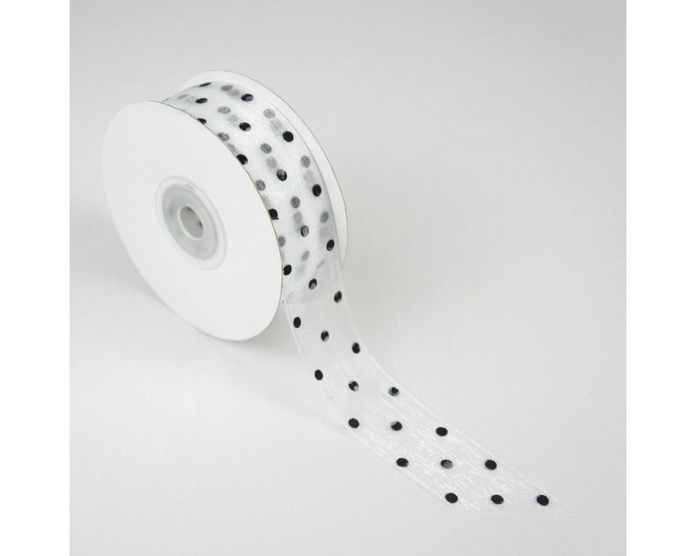 Лента органза "Горошек" 25мм цв. белый, цена за 1 м