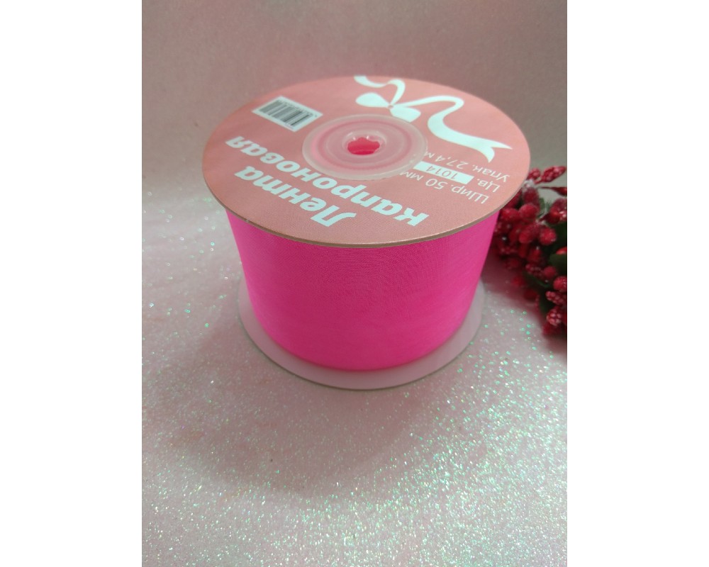Лента органза 5 см*27,4 м (цв. ярко-розовый)