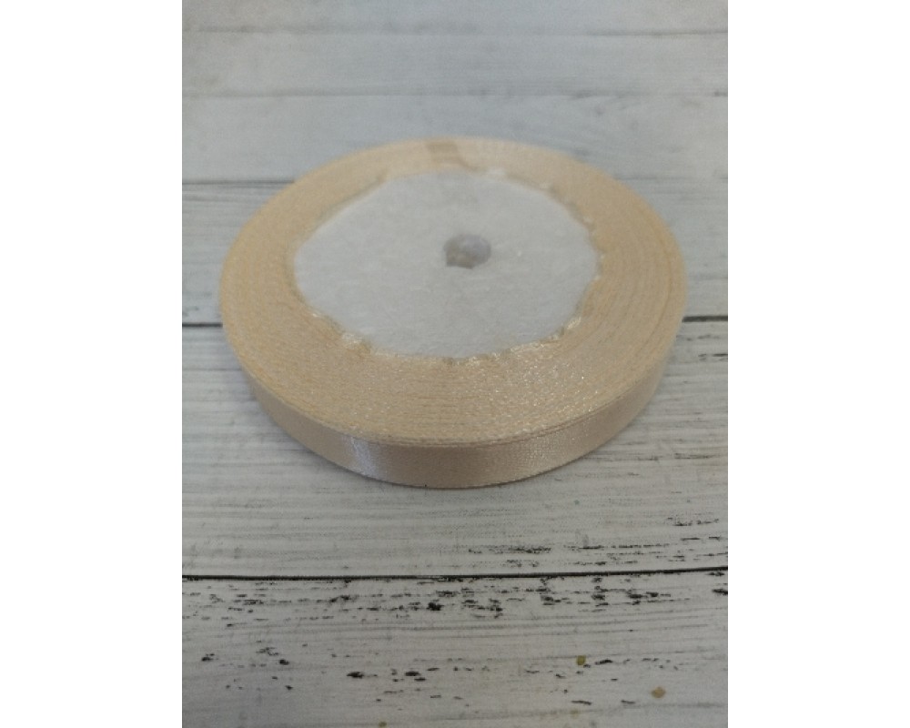 Лента атласная однотонная 1,2 см*25 ярдов цв. кремовый, цена за катушку