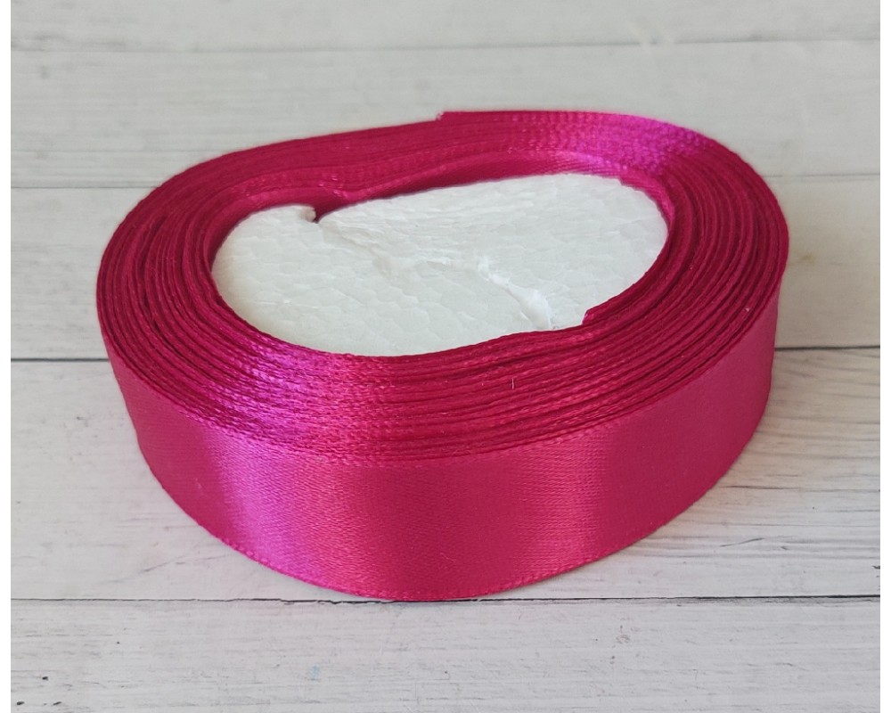 Лента атласная однотонная 2,5 см*25 ярдов цв розовая фуксия 28, цена за 5 м