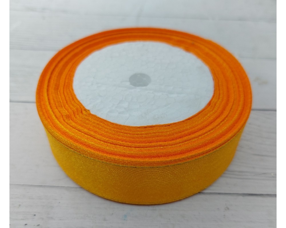 Лента атласная с люрексом (серебро) 25 мм*25 ярдов цв. оранжевый, цена за 5 м