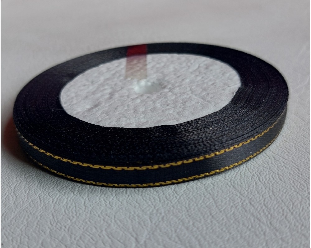 Лента атласная с люрексом 0,6 см*25 ярдов цв. черный, цена за катушку
