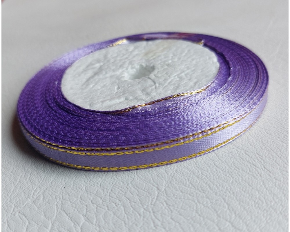 Лента атласная с люрексом 0,6 см*25 ярдов цв. фиолетовый, цена за катушку