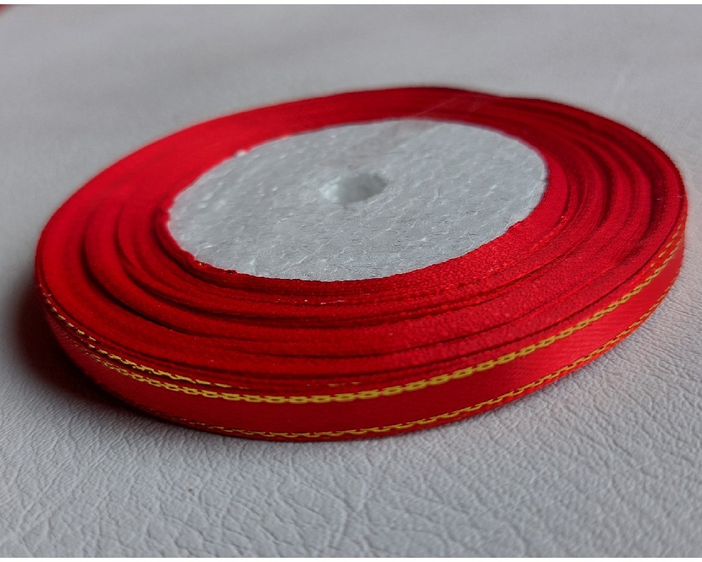 Лента атласная с люрексом 0,6 см*25 ярдов цв. красный, цена за катушку