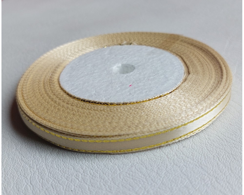 Лента атласная с люрексом 0,6 см*25 ярдов цв. кремовый, цена за катушку