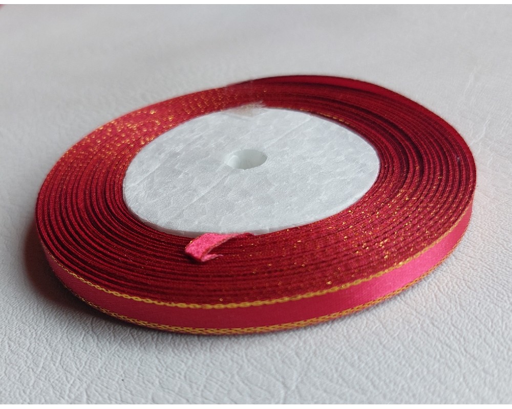 Лента атласная с люрексом 0,6 см*25 ярдов цв. малиновый, цена за катушку