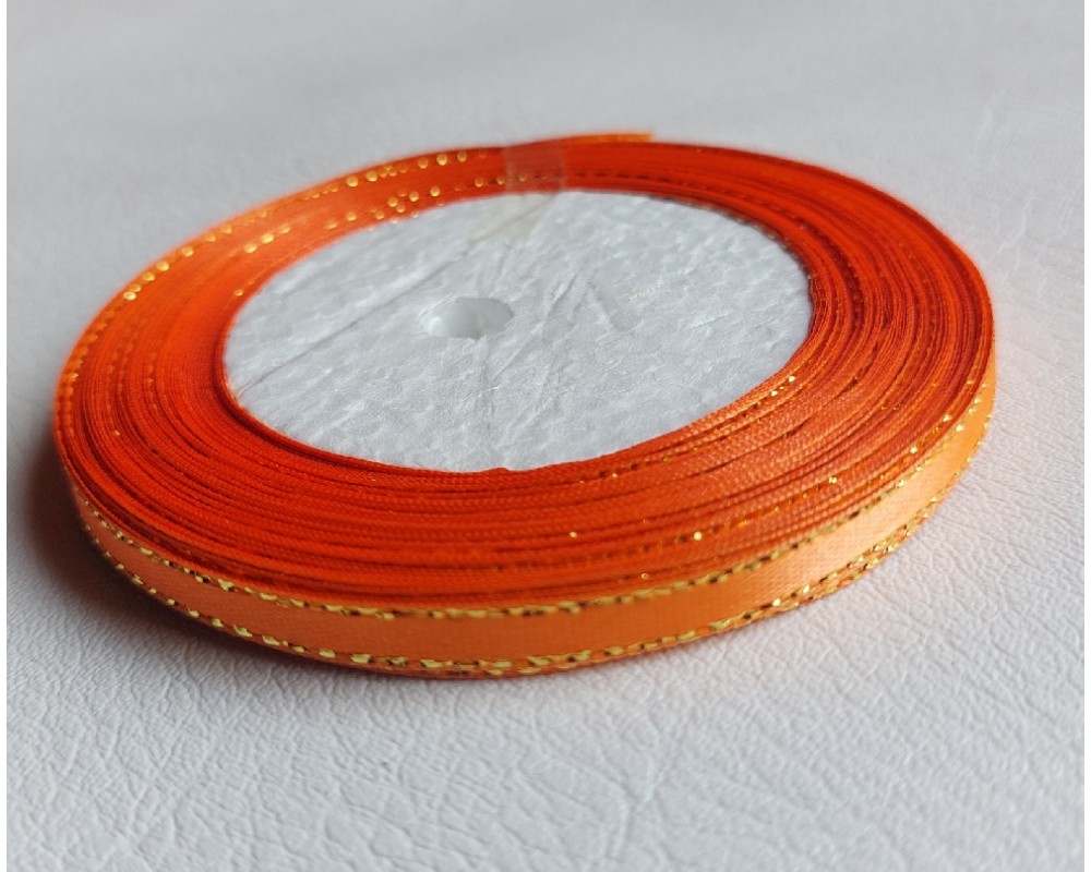 Лента атласная с люрексом 0,6 см*25 ярдов цв. оранжевый, цена за катушку