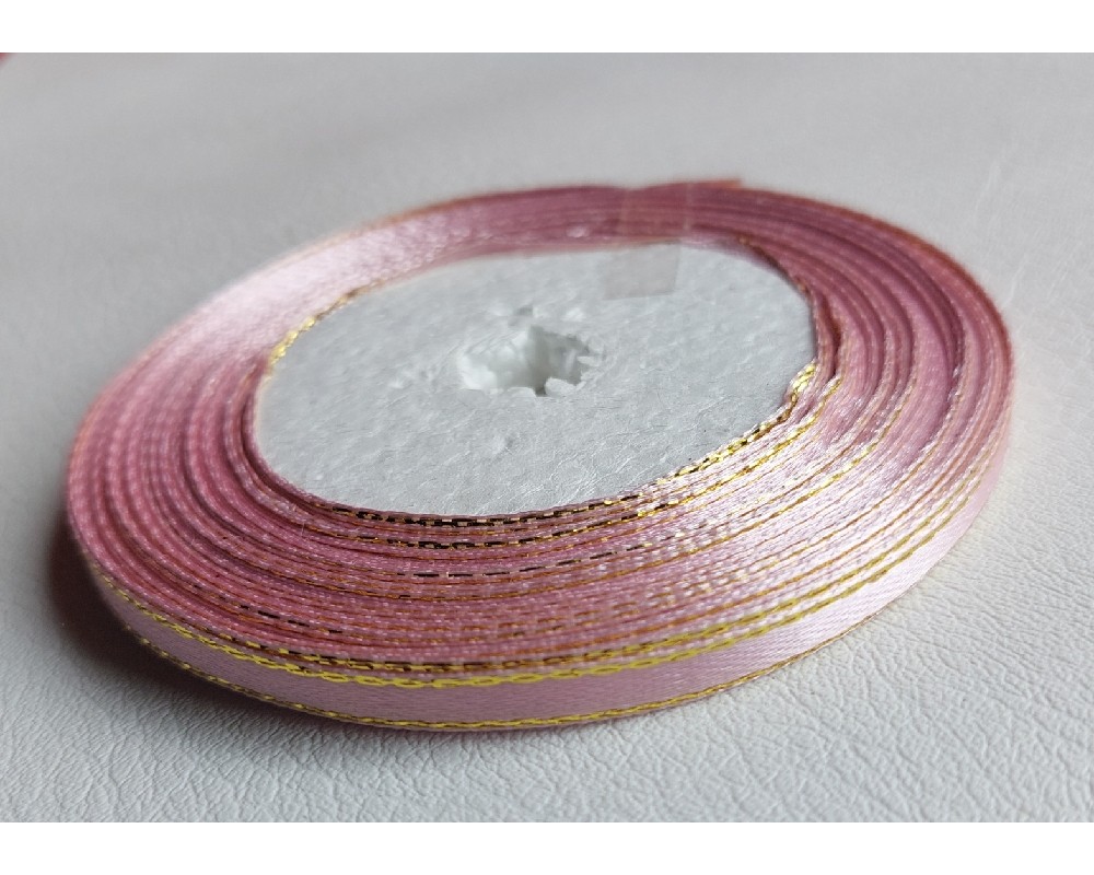 Лента атласная с люрексом 0,6 см*25 ярдов цв. розовый, цена за катушку