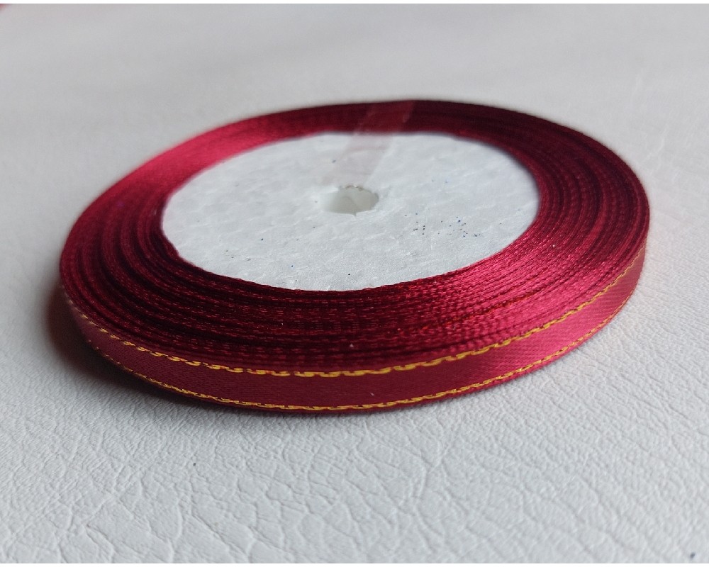 Лента атласная с люрексом 0,6 см*25 ярдов цв. темно-бордовый, цена за катушку