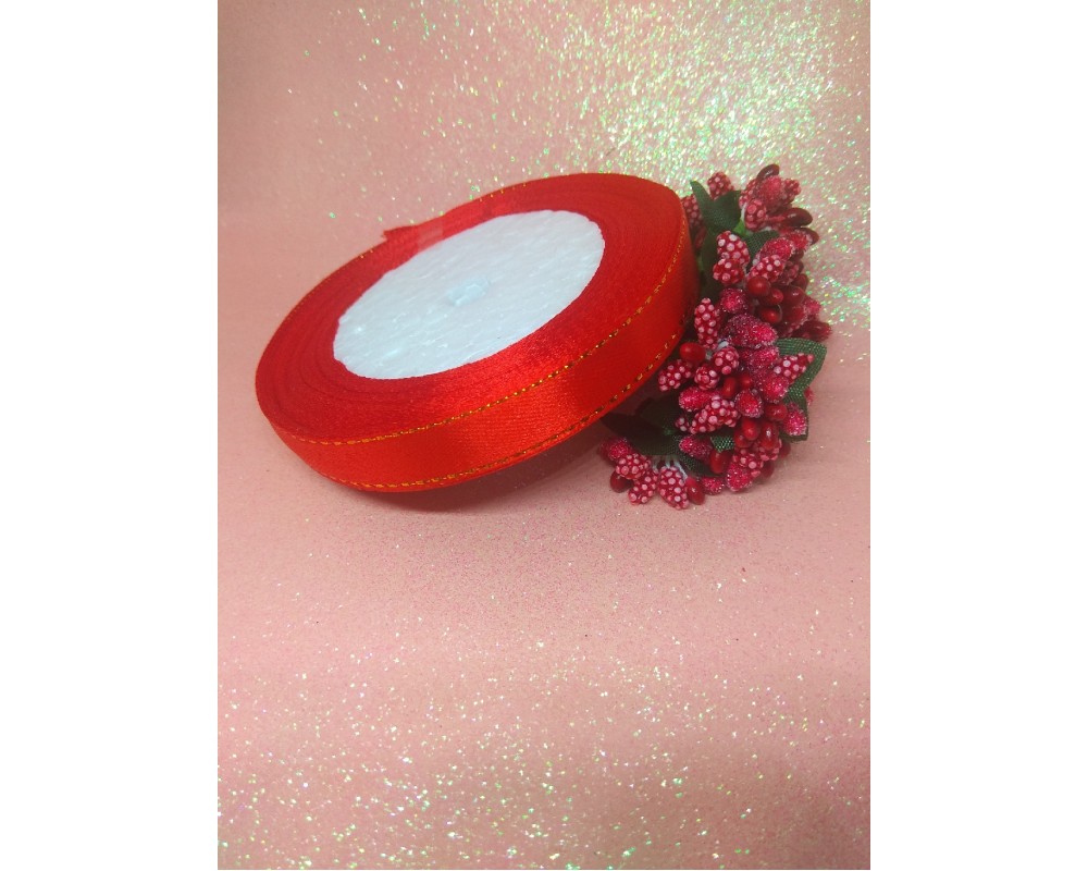 Лента атласная с люрексом 1,2 см*25 ярдов цв. красный, цена за катушку