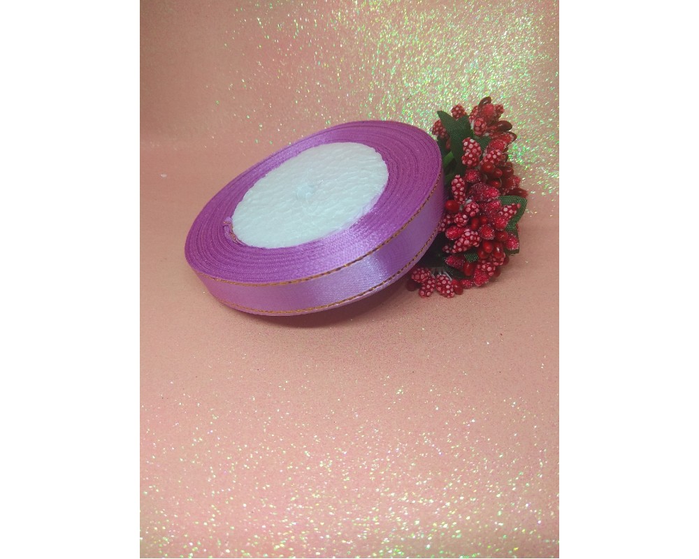 Лента атласная с люрексом 1,2 см*25 ярдов цв. светло-фиолетовый, цена за катушку