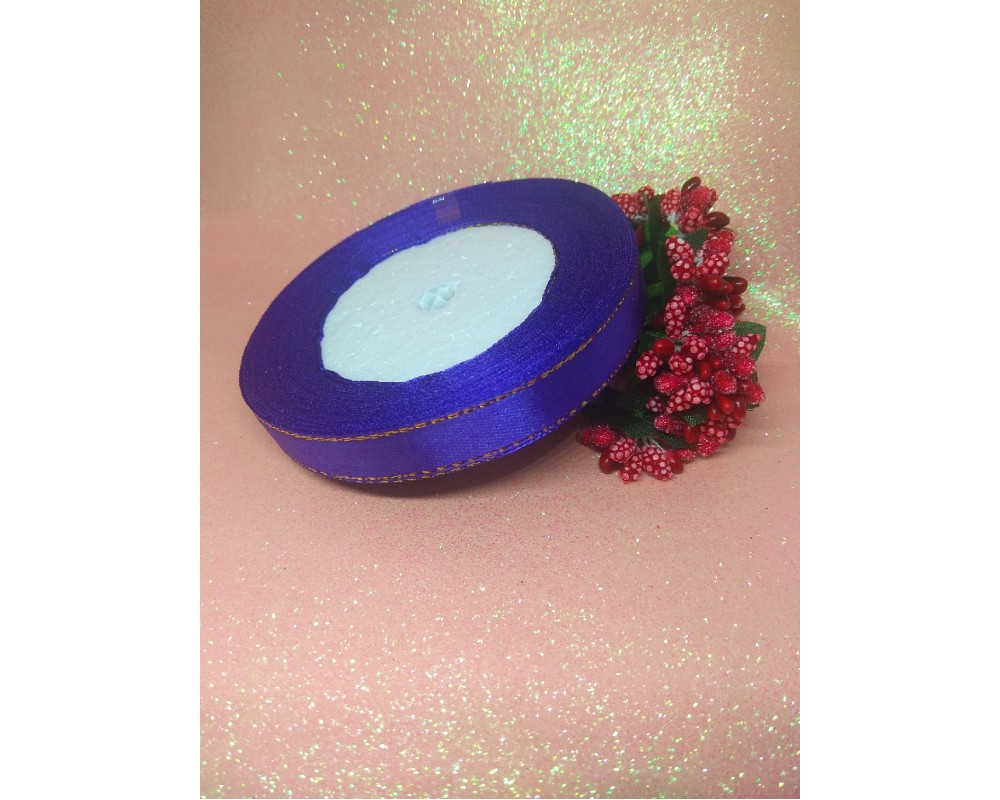 Лента атласная с люрексом 1,2 см*25 ярдов цв. темно-фиолетовый, цена за катушку