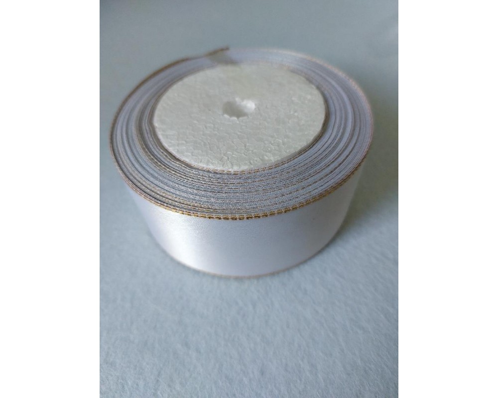 Лента атласная с золот.люрексом/ ш.40мм/ цв.белый/ 22,8 м в рулоне