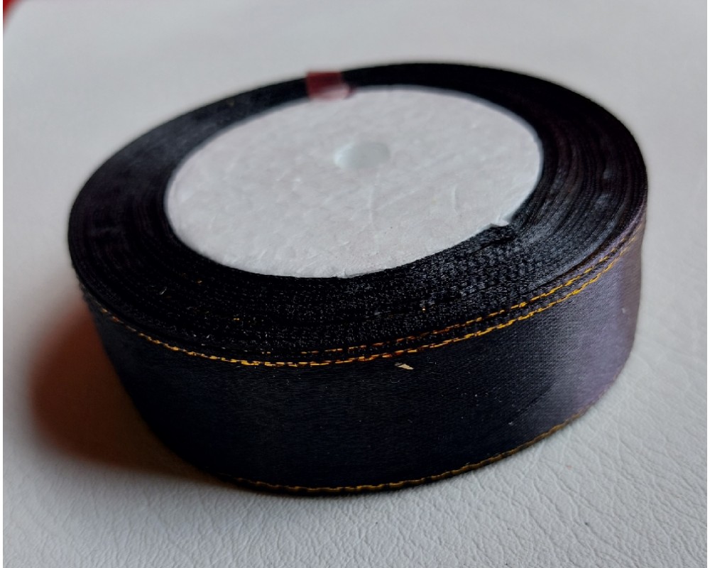 ОПТ Лента атласная с люрексом 25 мм*25 ярдов цв. черный, цена за катушку