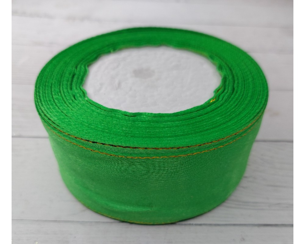 ОПТ Лента атласная с люрексом 4 см*25 ярдов цв. зеленый