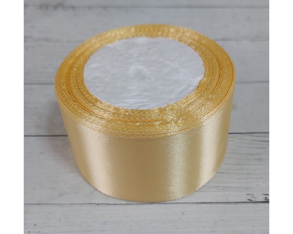 ОПТ Ленты атласные однотонные 5 см*25 ярдов цв. светлое золото 87, цена за катушку