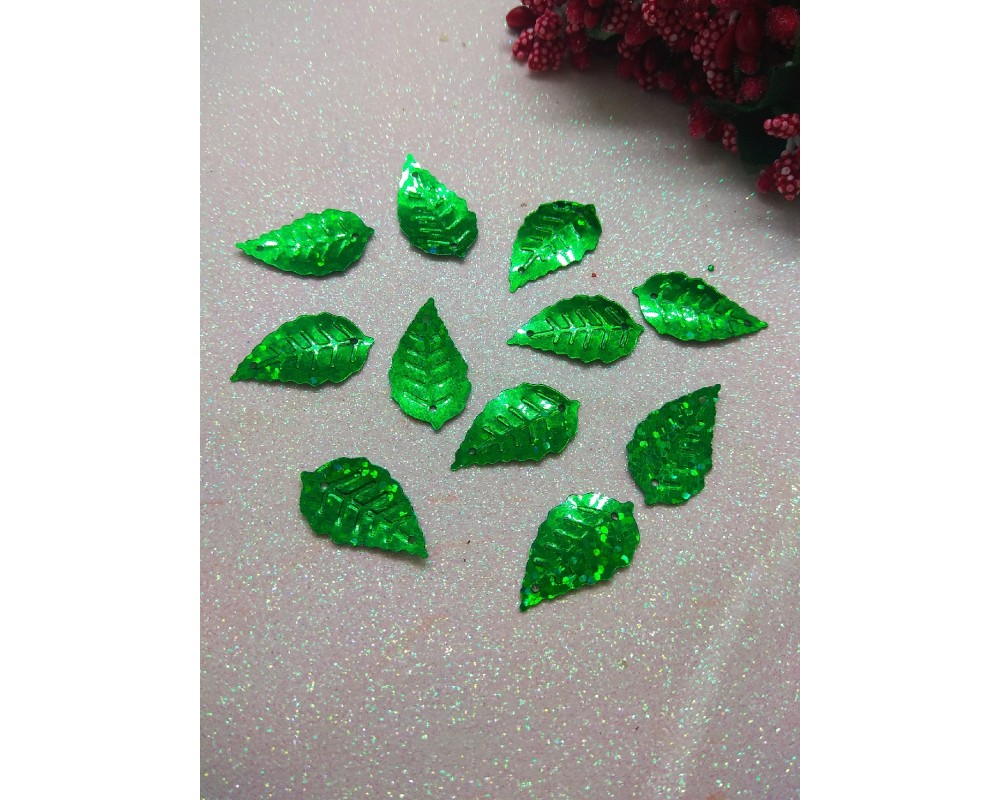 Пайетки "Листик" 25*14 мм, цв. зеленый, цена за 10 гр