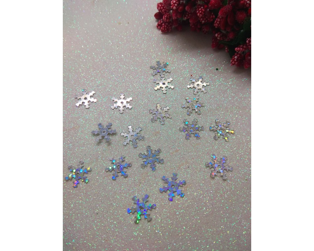 Пайетки "Снежинки" 1,2 см, цв. серебряный, цена за 10 гр