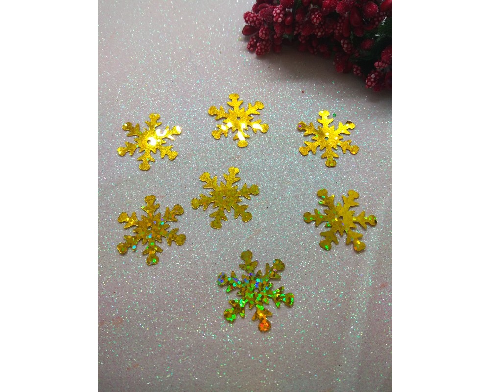 Пайетки "Снежинки" 2,5 см, цв. золото, цена за 10 гр