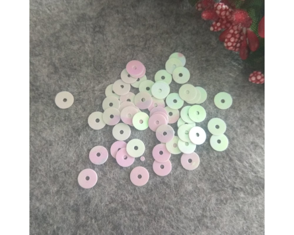 Пайетки плоские 6 мм, цв. белый перламутр, цена за 10 гр