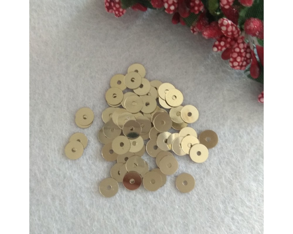 Пайетки плоские 6 мм, цв. светлое золото, цена за 10 гр