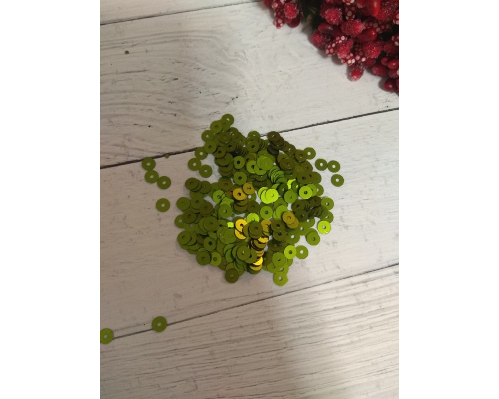 Пайетки круглые 4 мм цв. фисташковый, цена за 5 гр