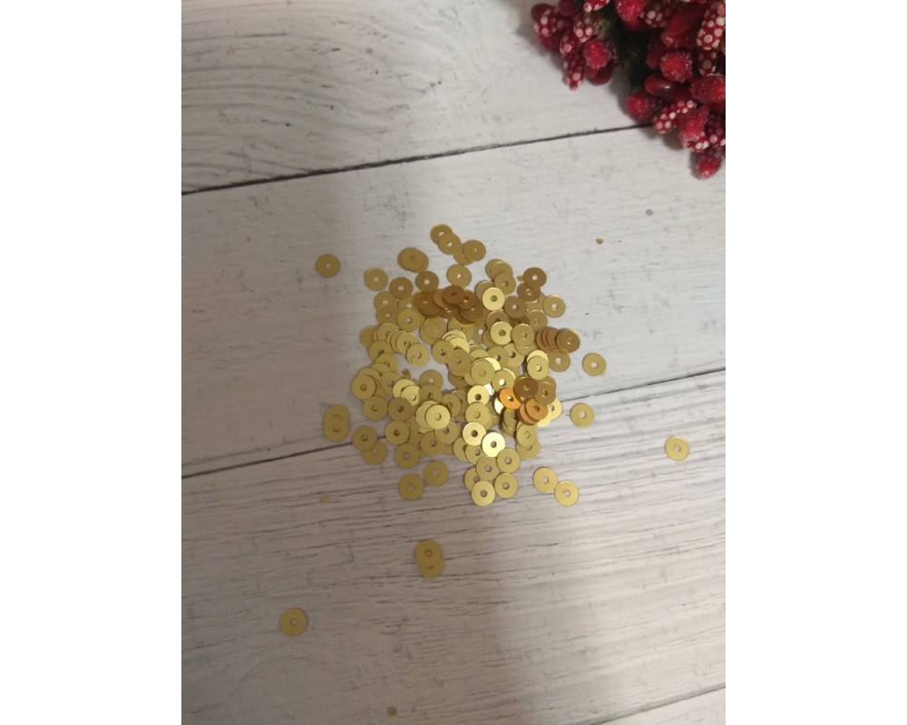 Пайетки круглые 4 мм цв. темное золото, цена за 5 гр