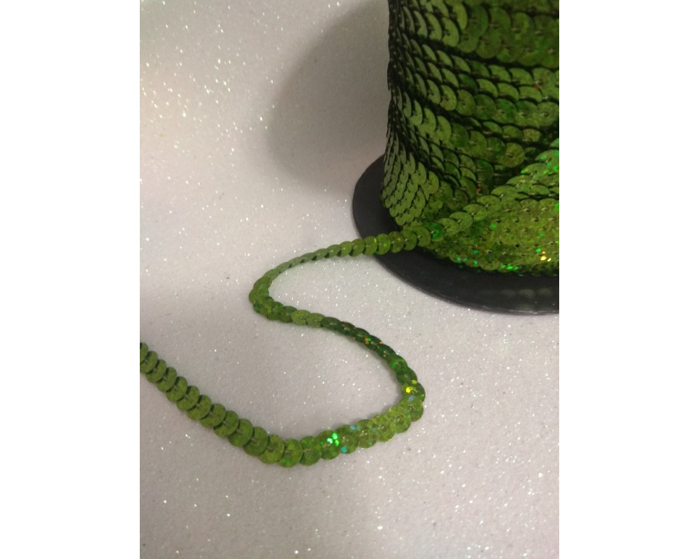 Пайетки на нитке d=6 мм голограмма оливковые, цена за 10 м