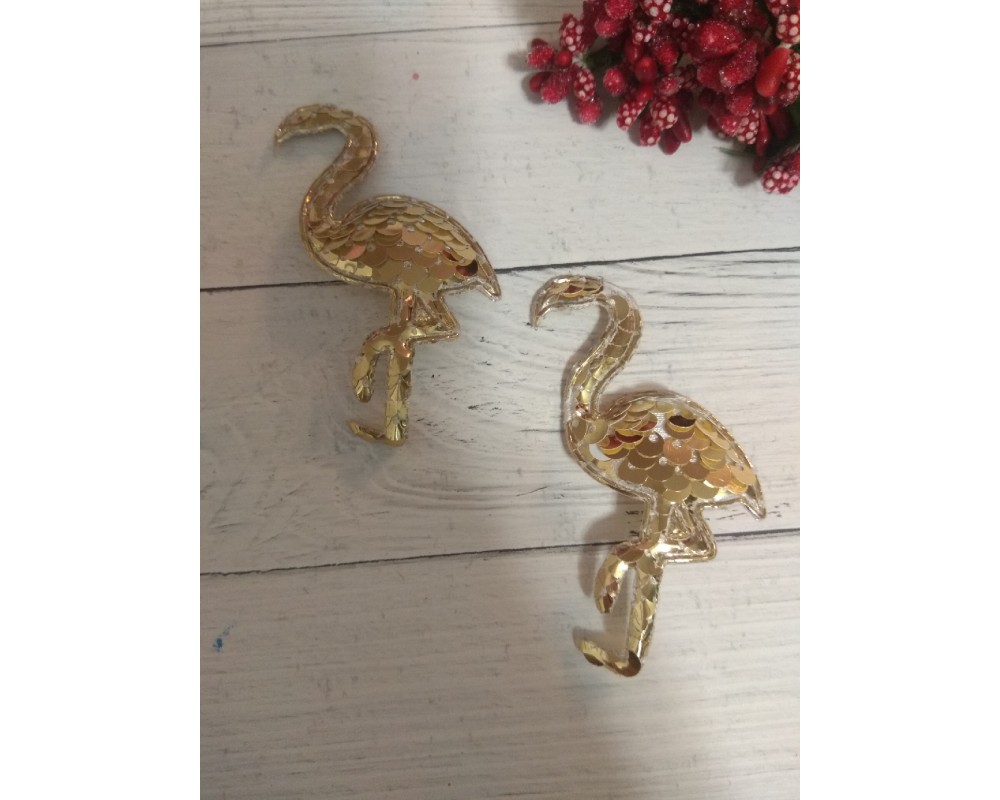 Патч 3D "Фламинго" 6*4 см цв. светлое золото, цена за 1 шт