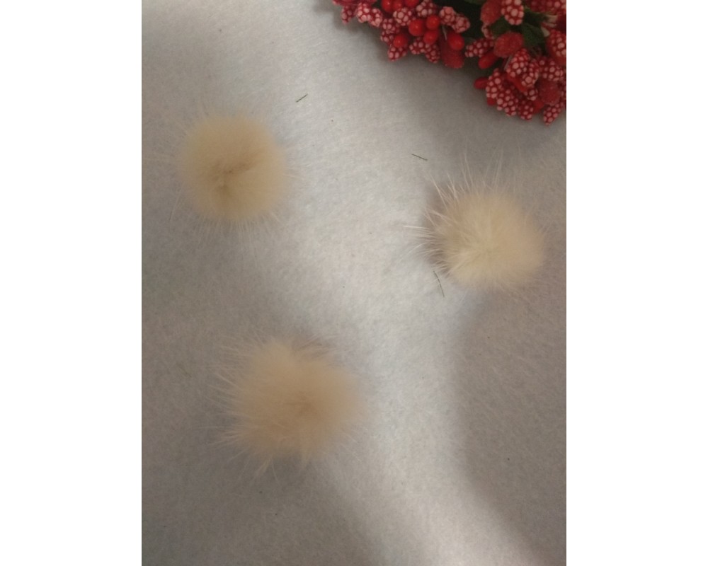 Помпоны меховые 3 см, натуральные , бежевый, цена за 1 шт
