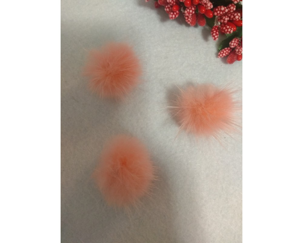 Помпоны меховые 3 см, натуральные , розовый персик, цена за 1 шт