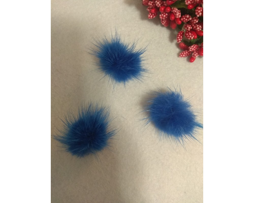 Помпоны меховые 3 см, натуральные , синий, цена за 1 шт