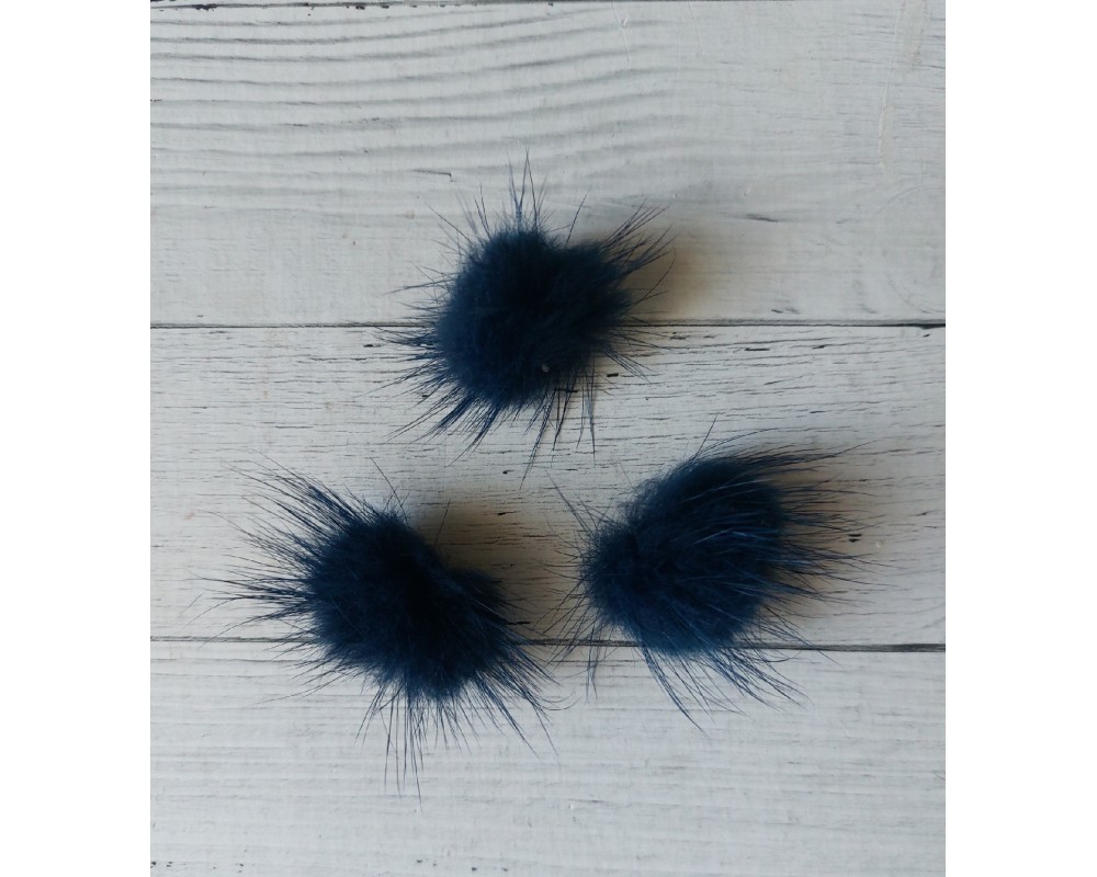 Помпоны меховые 3 см, натуральные , темно-синий, цена за 1 шт
