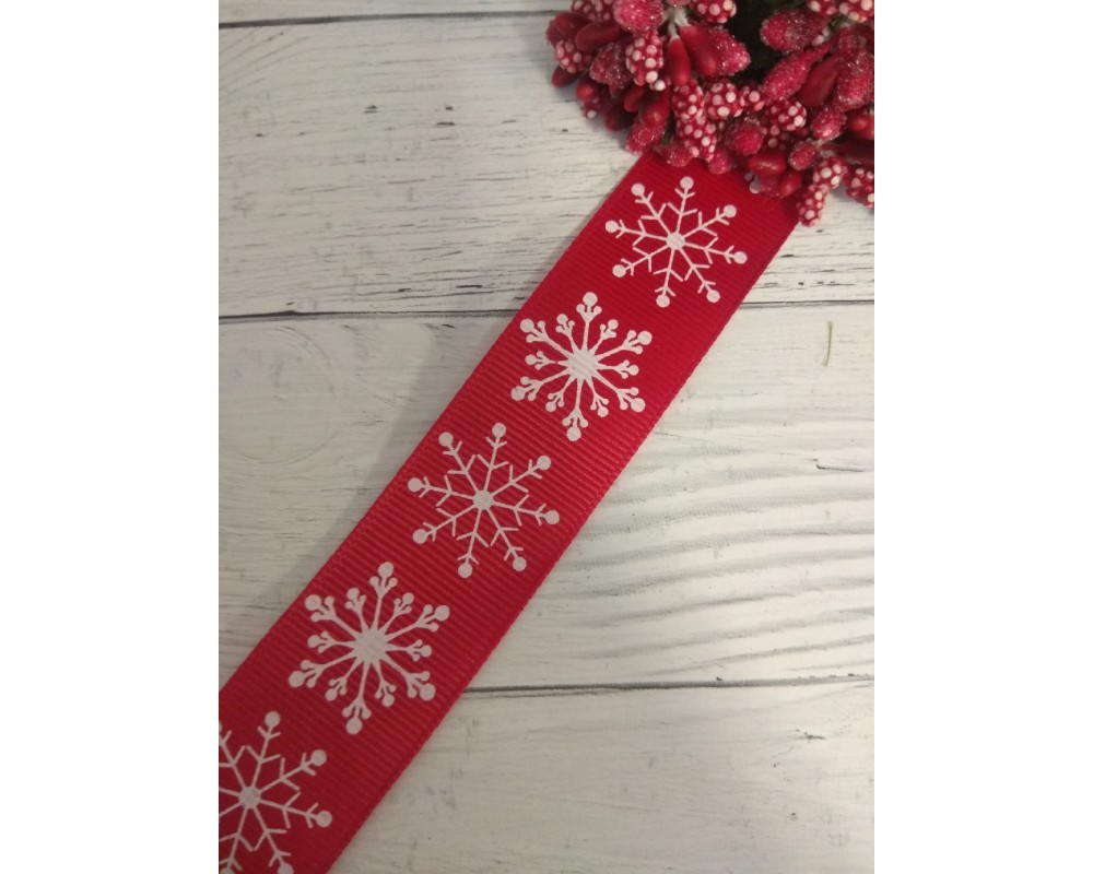 Лента репсовая «Снежинки», 25 мм, цена за 1 м