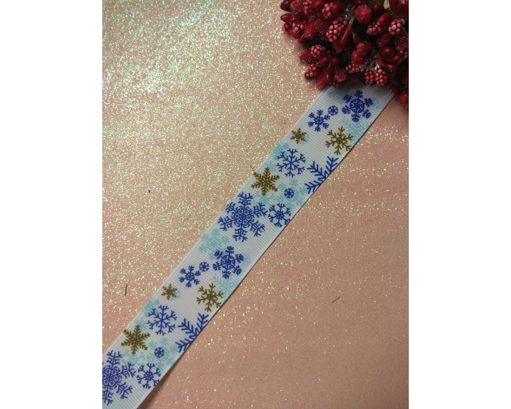 Лента репсовая 2,5 см "Снежинки", цена за 1 м