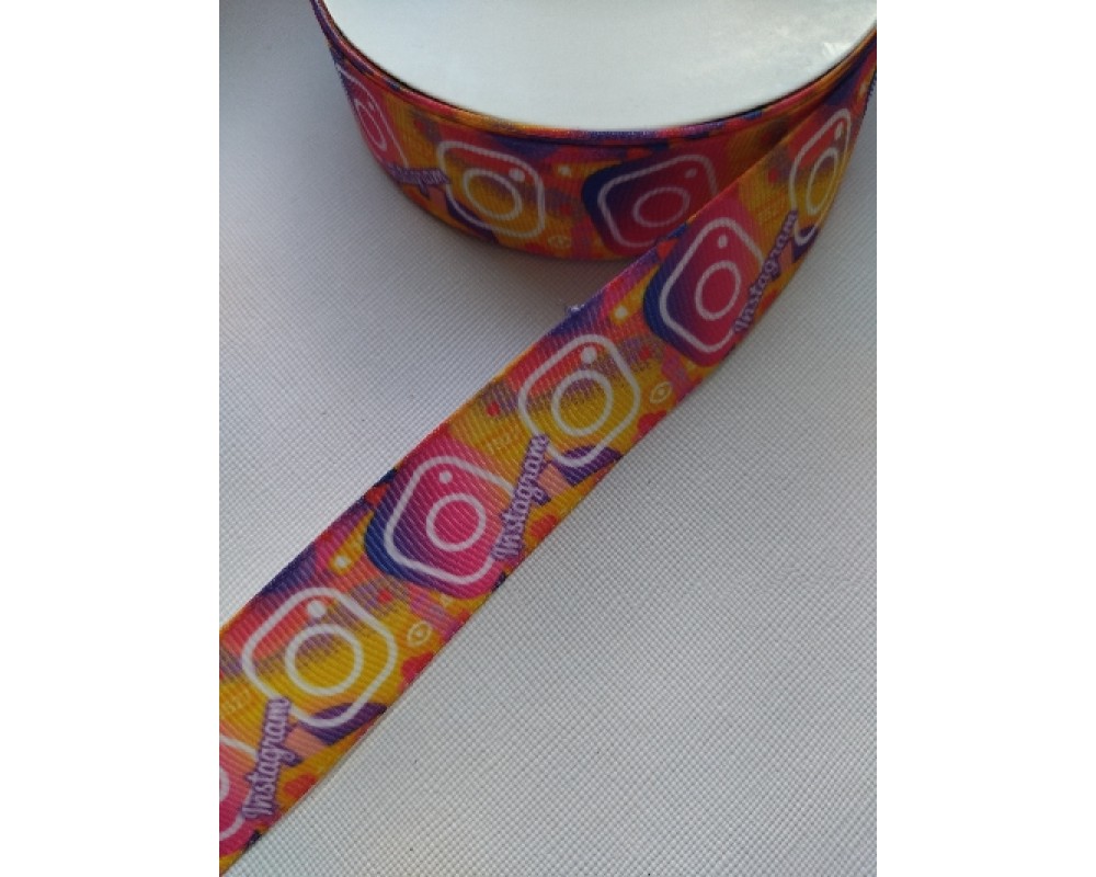 Лента репсовая 2,5 см с рисунком "Instagram", цена за 1 м