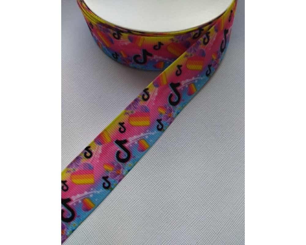 Лента репсовая 2,5 см с рисунком "Likee и TikTok", цена за 1 м