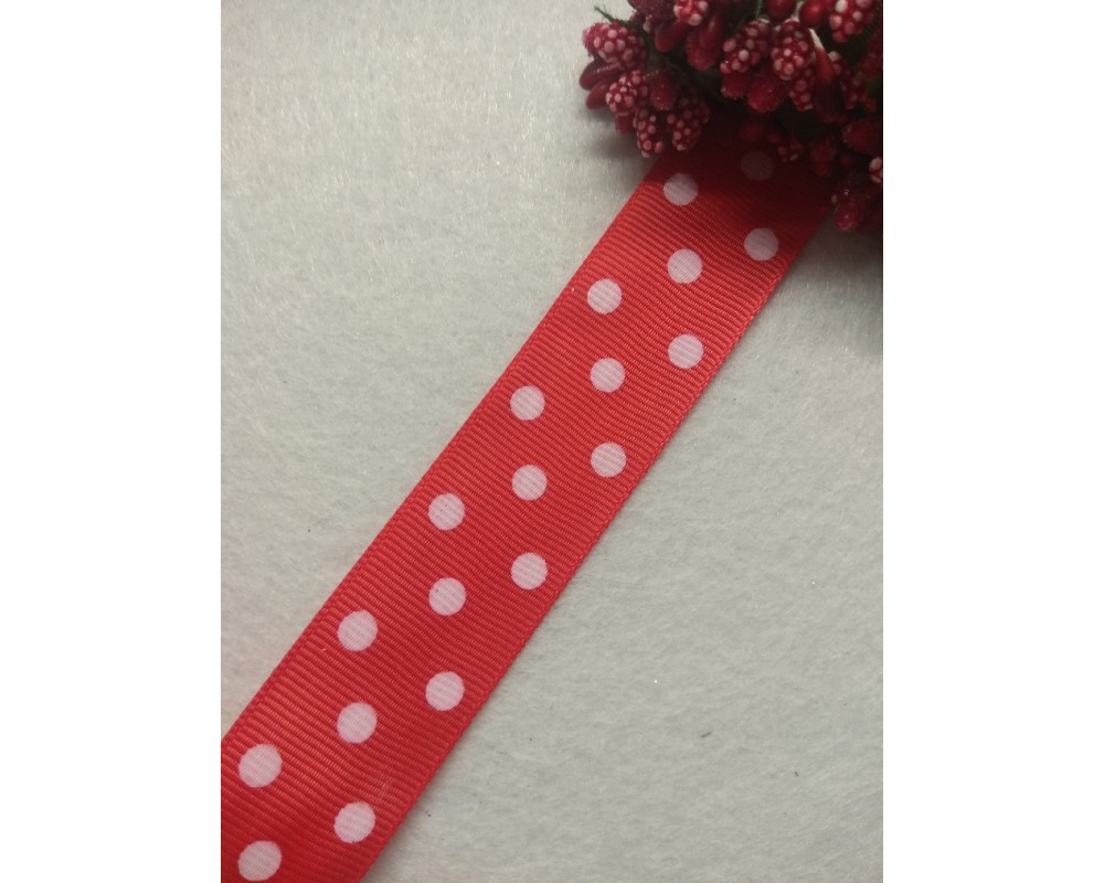 Лента репсовая 2,5 см в горох цв. красный, цена за 1 м