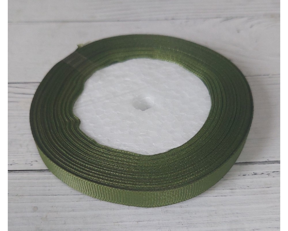 Лента репсовая однотонная 1 см*20 ярдов, цв. хаки, цена за катушку