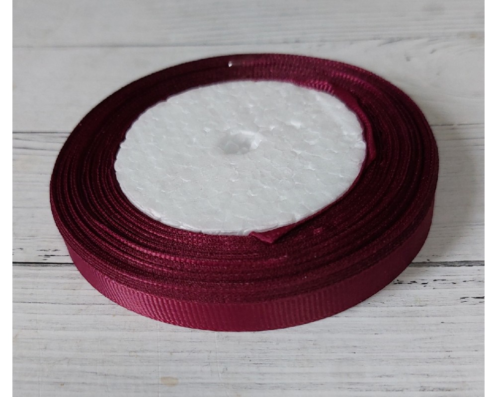 Лента репсовая однотонная 1 см*20 ярдов, цв. винный, цена за катушку