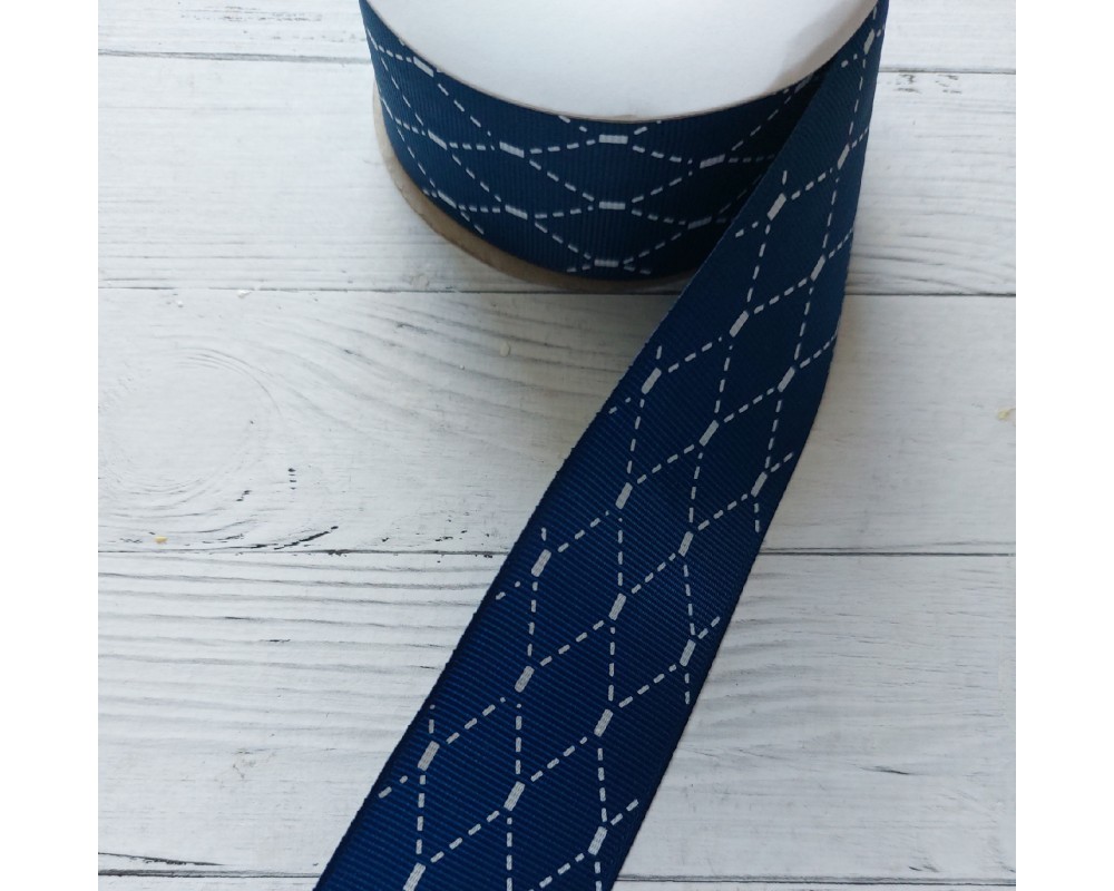 Лента репсовая с рисунком "Ромбик" 4 см цв. темно-синий, цена за 1 м