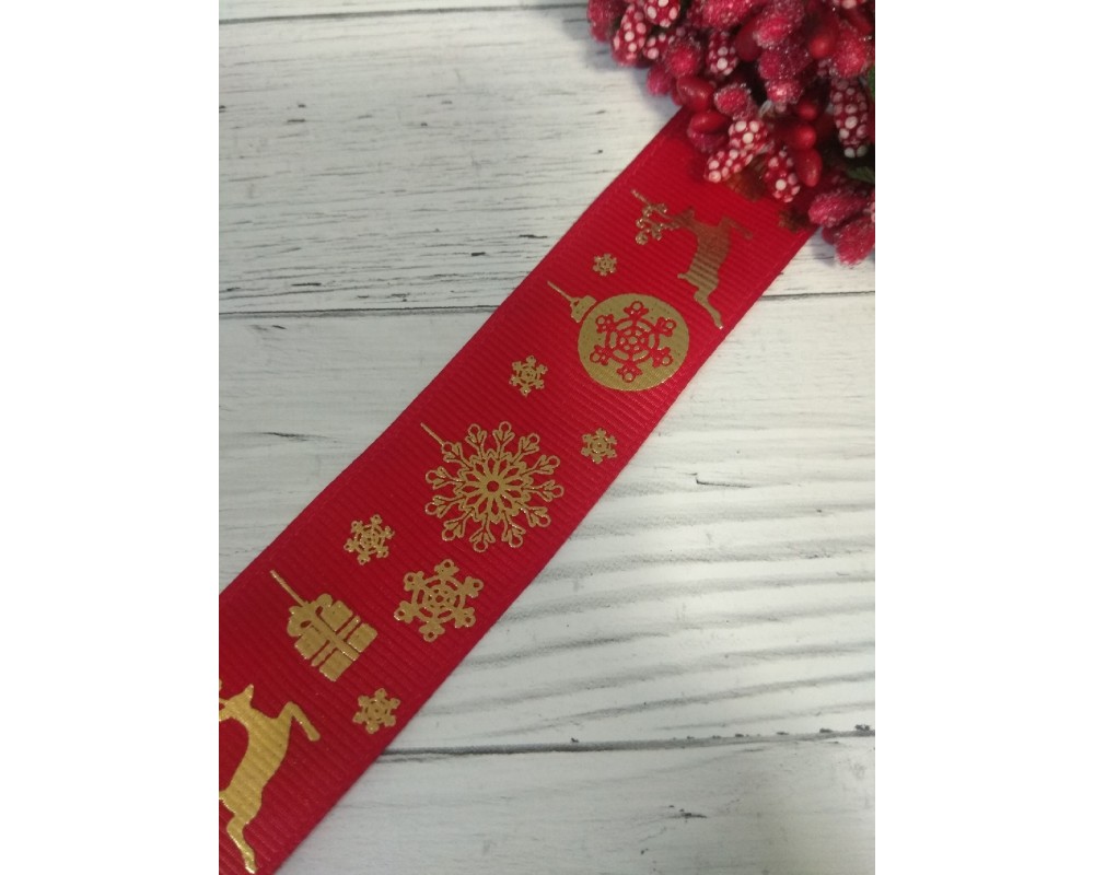 Лента репсовая с тиснением «Олени», 25 мм, цена за 1 м