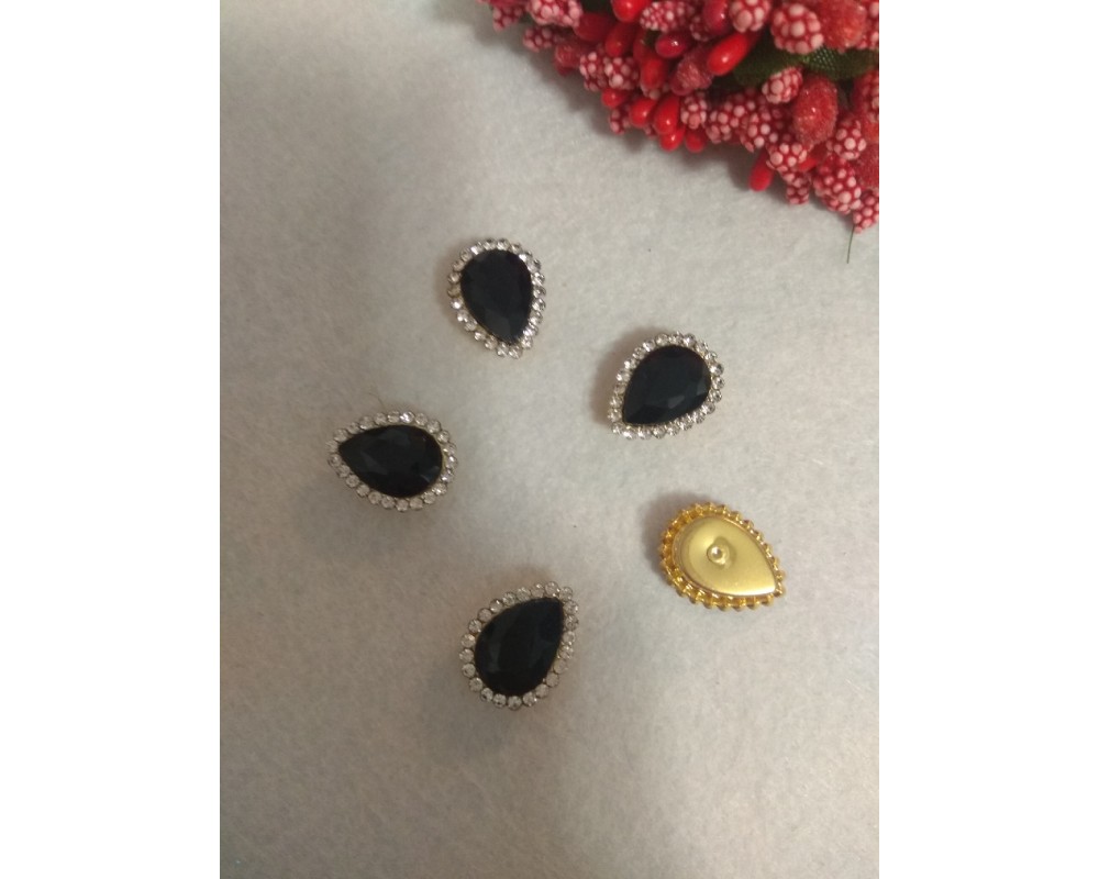 Стразы пришивные в золотой оправе 14*18 мм "Капля" , черный, цена за 1 шт