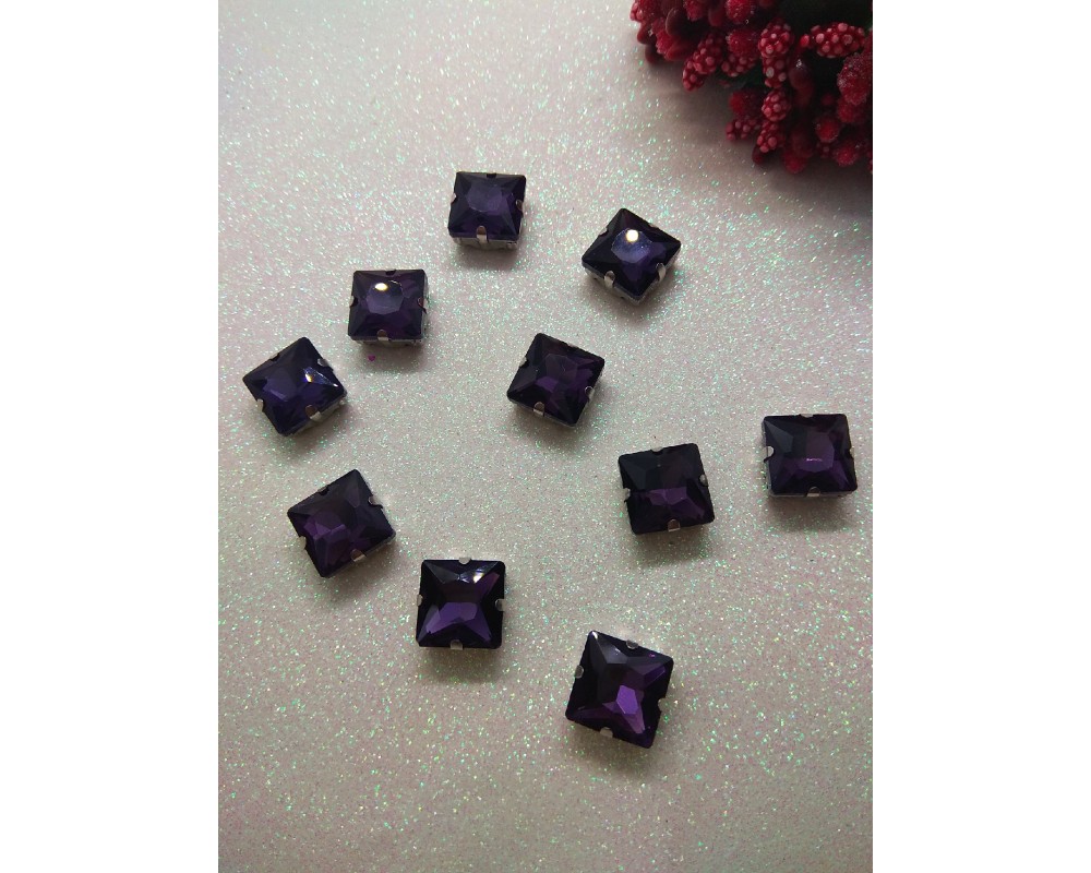 Стразы в цапах "Квадрат" цв. фиолетовый, цена за 1 шт
