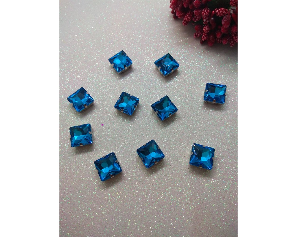 Стразы в цапах "Квадрат" цв. голубой, цена за 1 шт