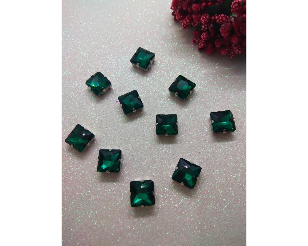 Стразы в цапах "Квадрат" цв. изумрудный, цена за 1 шт