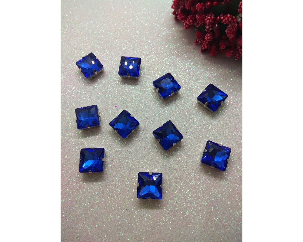 Стразы в цапах "Квадрат" цв. синий, цена за 1 шт