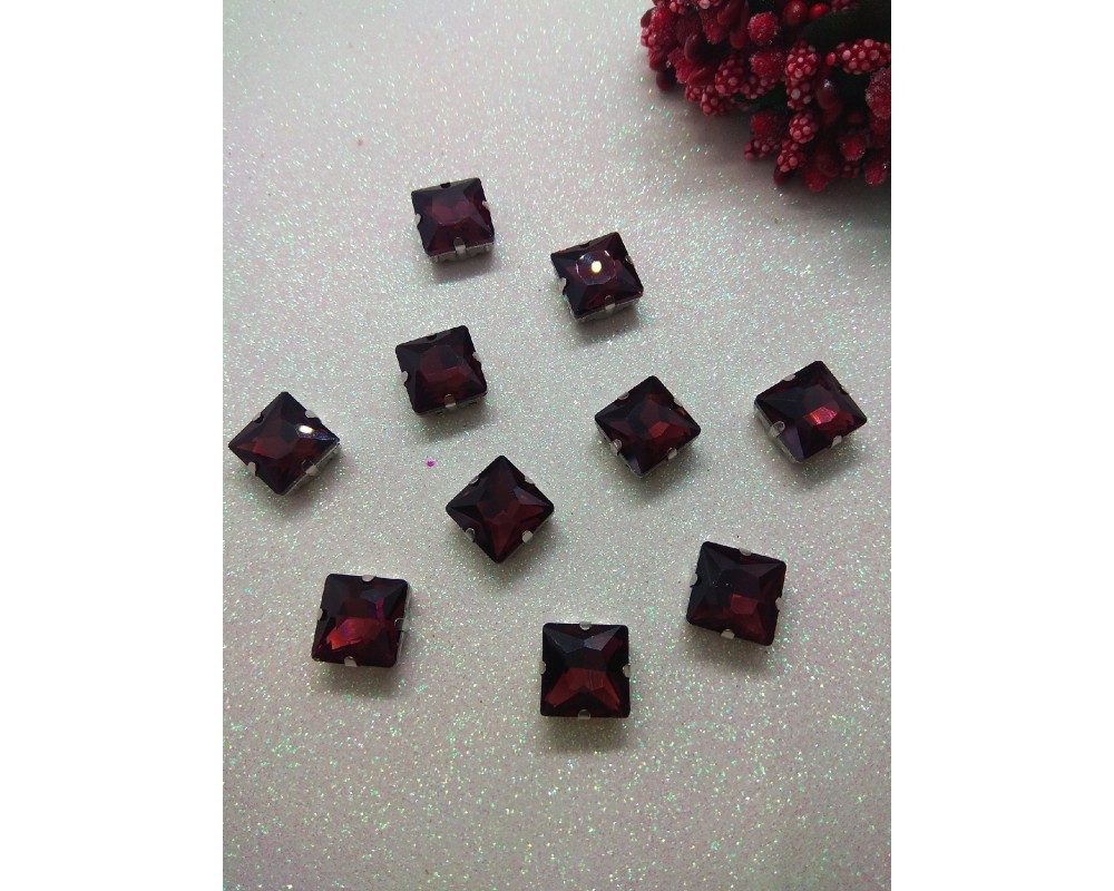 Стразы в цапах "Квадрат" цв. винный, цена за 1 шт