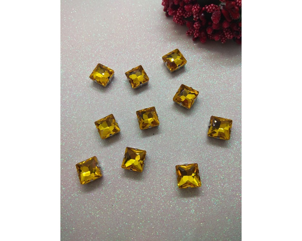 Стразы в цапах "Квадрат" цв. желтый, цена за 1 шт